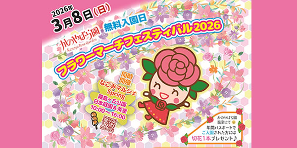 かのやばら園は、8haの広大な敷地に3万5千株のバラが植えられた日本最大規模を誇るバラ園です。バラの見頃となる春と秋には、「かのやばら祭り」を開催しています。特に春の開花シーズンは、鹿児島の温暖な気候を生かし、全国に先駆けて毎年5月のゴールデンウィーク頃に満開を迎えます。
