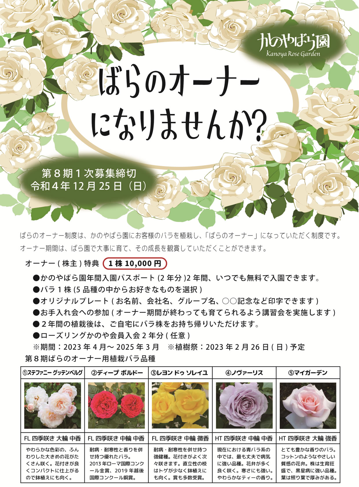 ばらのオーナー募集案内2022