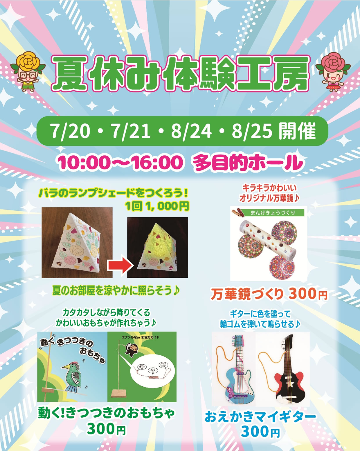 2024年7月20・21日 8月24・25日 夏休み体験工房のご案内