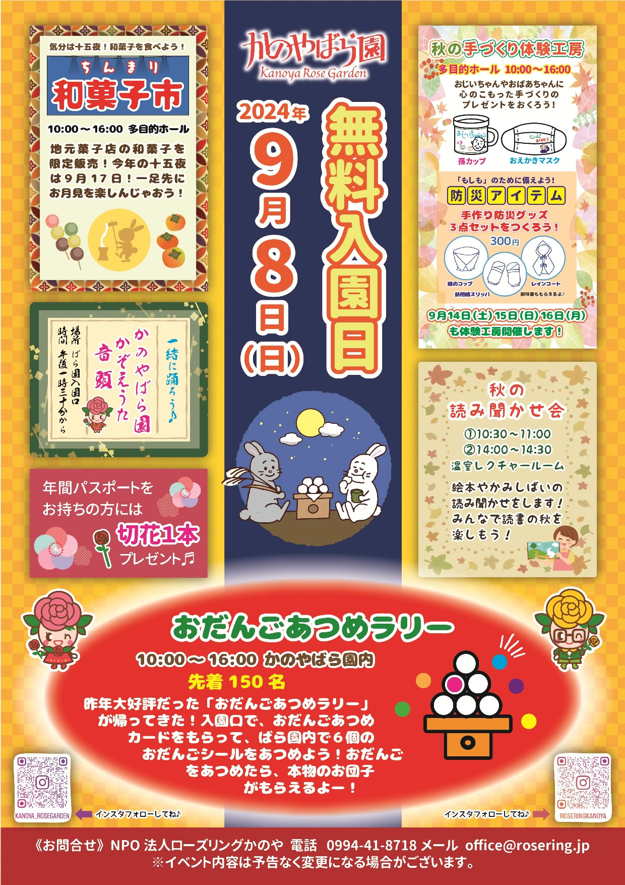 2024年9月8日 かのやばら園 無料入園日のご案内