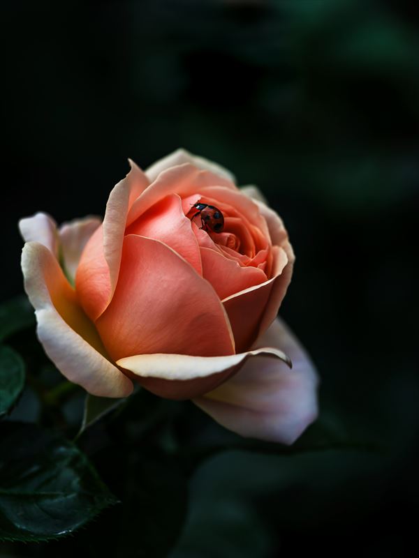 薔薇の可憐に咲き誇った姿にてんとう虫がとまっていてそれが可愛くて夢中でシャッターを切りました。