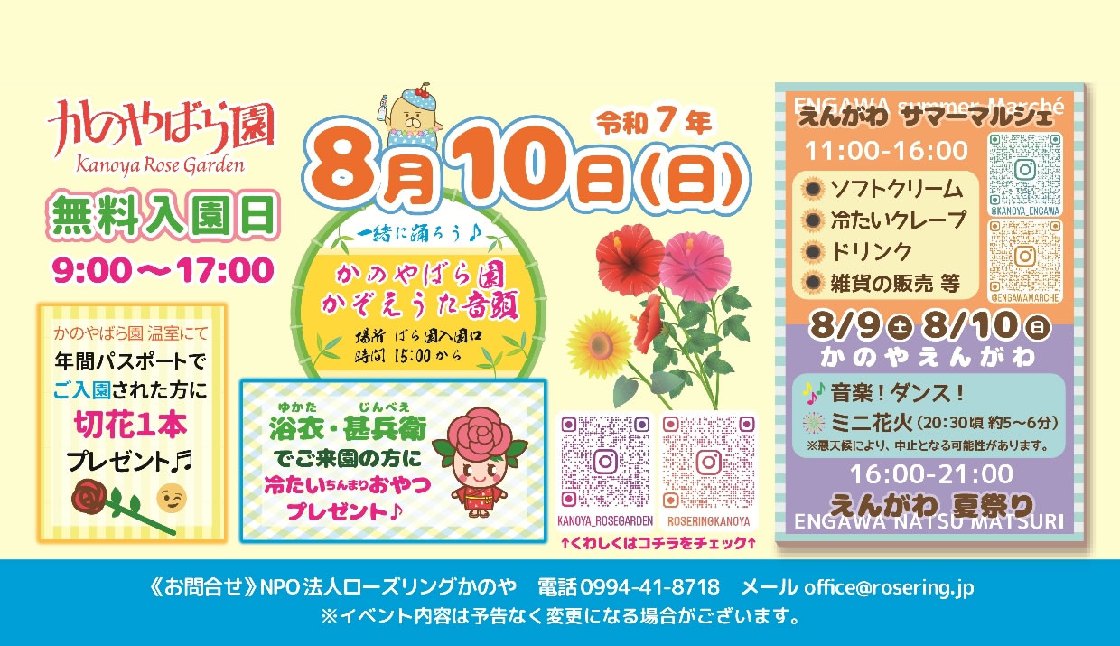 かのやばら園 無料入園日2025年8月10日のご案内