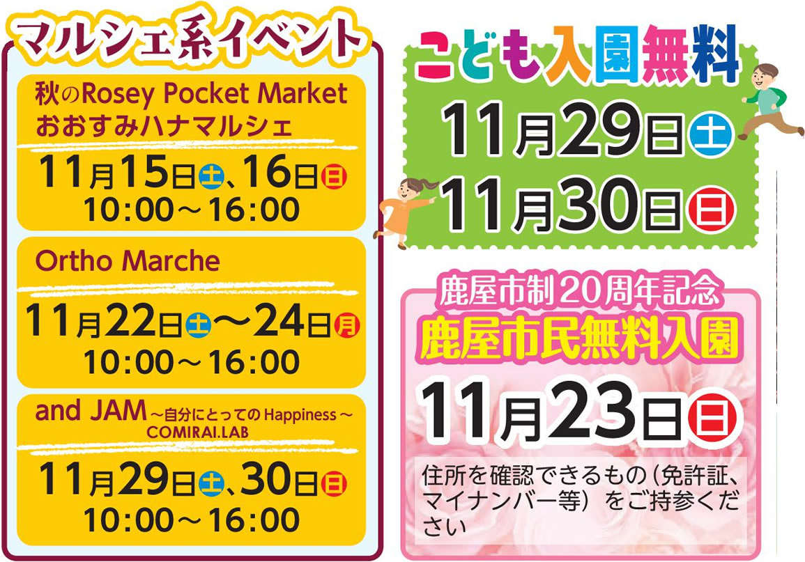 ※ステージイベントは全て入園料のみでご覧いただけます。また、記載内容は予告なく変更する場合(雨天の場合など)がありますのでご了承ください。