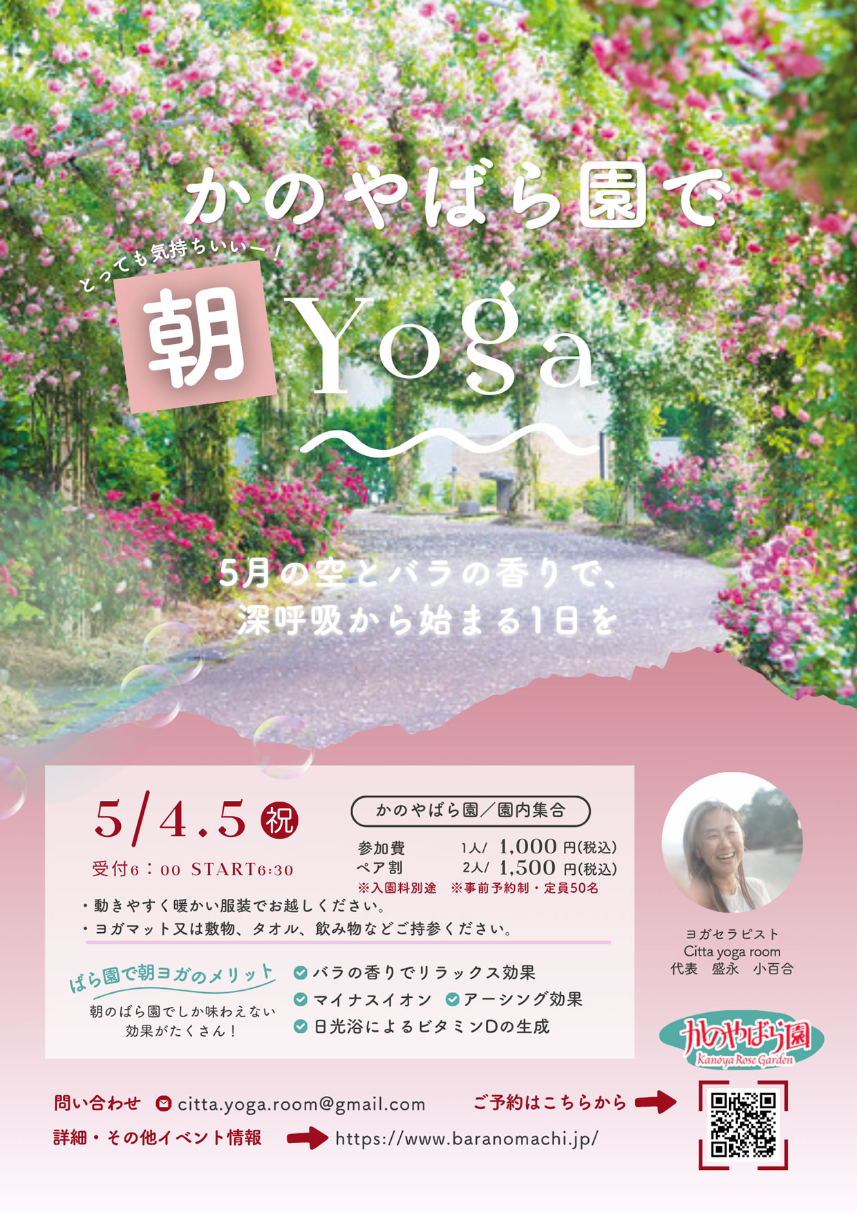【5月4・5日 開催】かのやばら園で朝Yogaのご案内